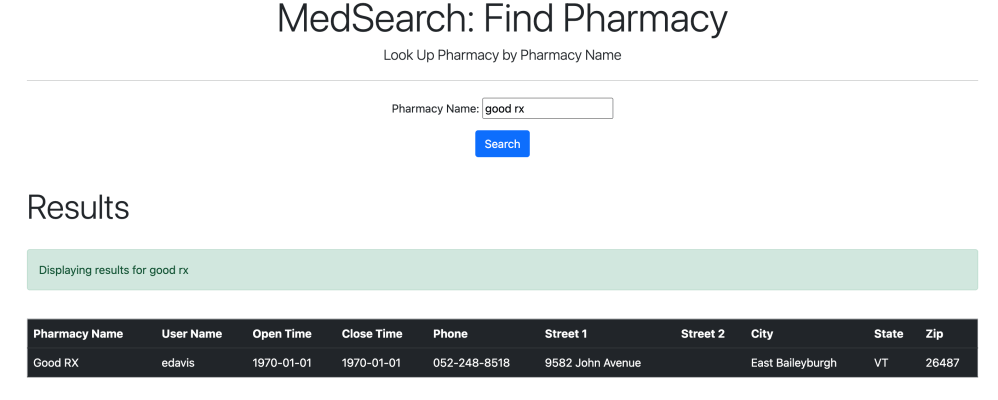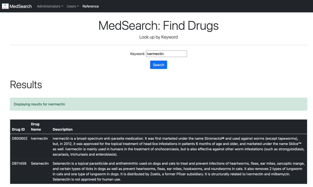 MedSearch is an old-school Create, Read, Update, Delete (“CRUD”) Java DatabaseConnectivity (“JDBC”) MySQL application built in the Eclipse IDE, which I worked on with a team while learning about MySql databases. JDBC essentially is a Java API used to execute queries on a database. It was my first time integrating a MySql database into a project. Initially, our project was deployed: the MySql database was hosted on AWS server and accessed virtually with DBeaver, and the code and server were local. There are many features for regular users of the system and for administrators of the system, so we will only review a few.