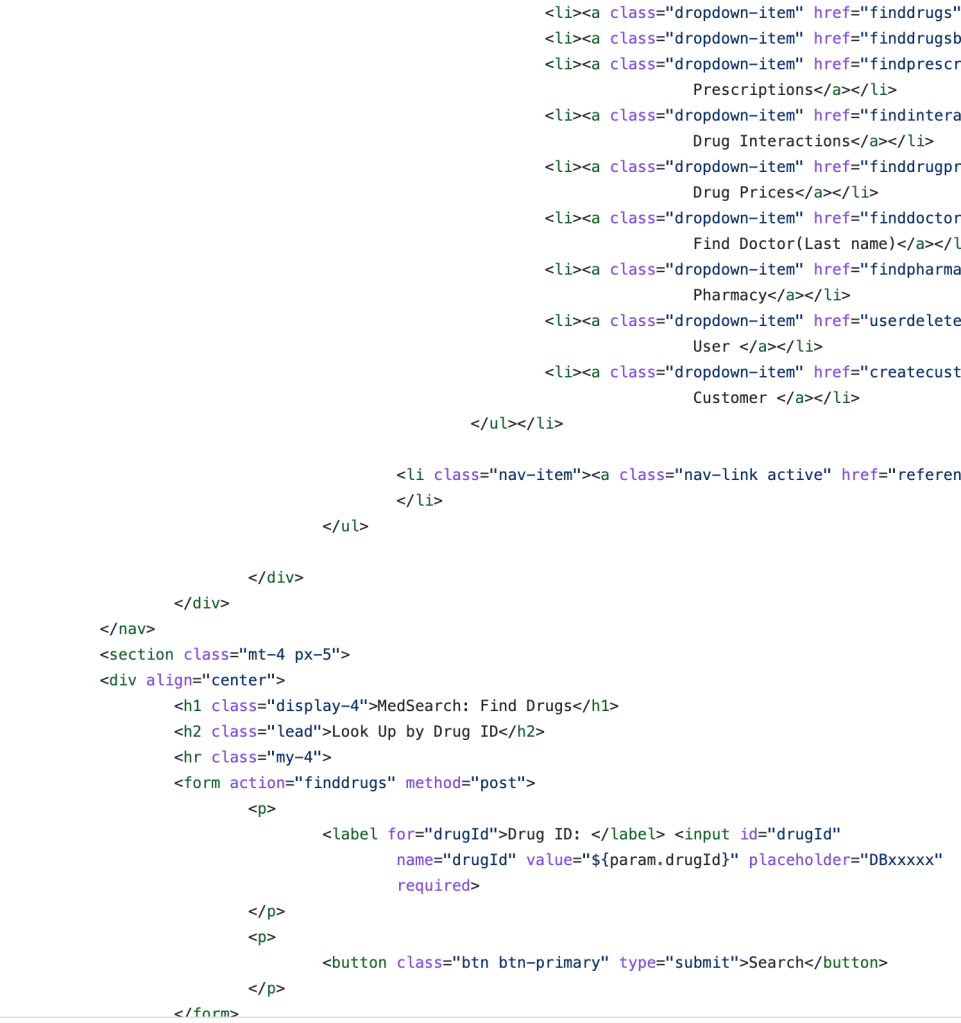 The View consisted of many .jsp pages with HTML and css. CreateDrug.jsp was one such page, which utilized a post method in a HTML form to communicate with the appropriate server/controller.