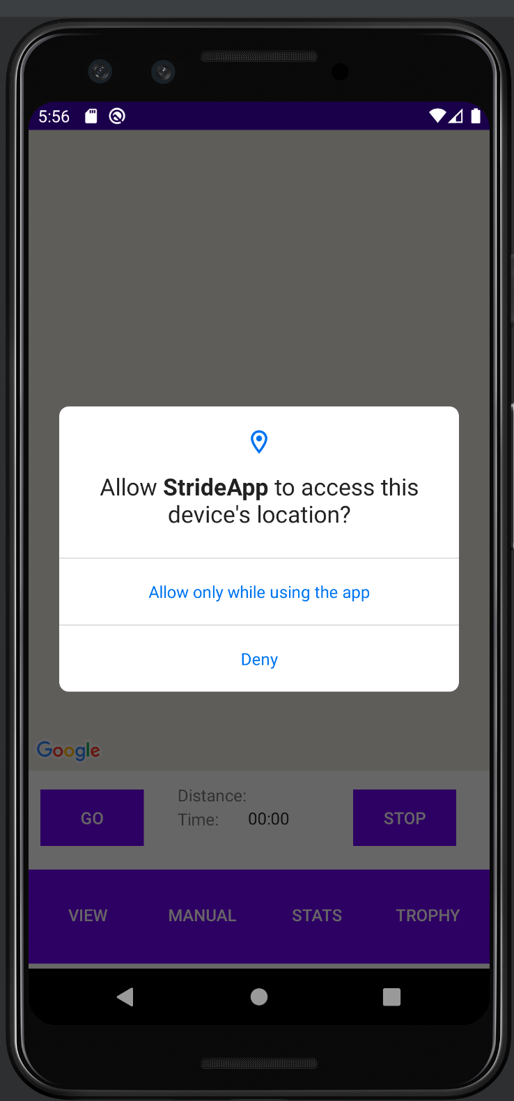 Stride is a running tracker application built with Android Studio that allows users to keep a record of their running routes, including calories burned, distance traveled, and the path taken. The application utilizes Google’s Maps API to depict user map location in conjunction with Android’s location API, in order to draw running routes via polylines.
