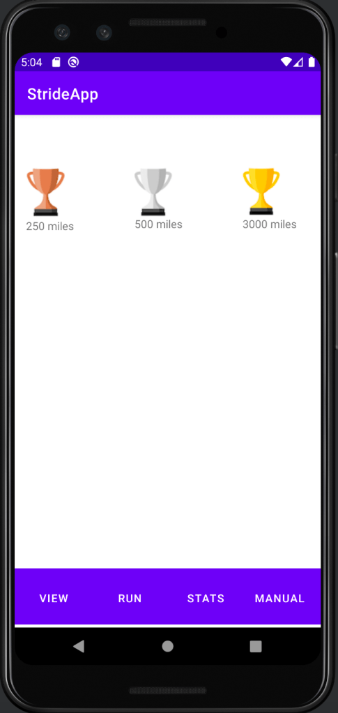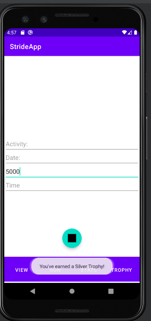 Users may choose to manually enter a run. This feature is not fully fleshed out because it was originally used for my own internal testing earning trophies and the recyclerview: